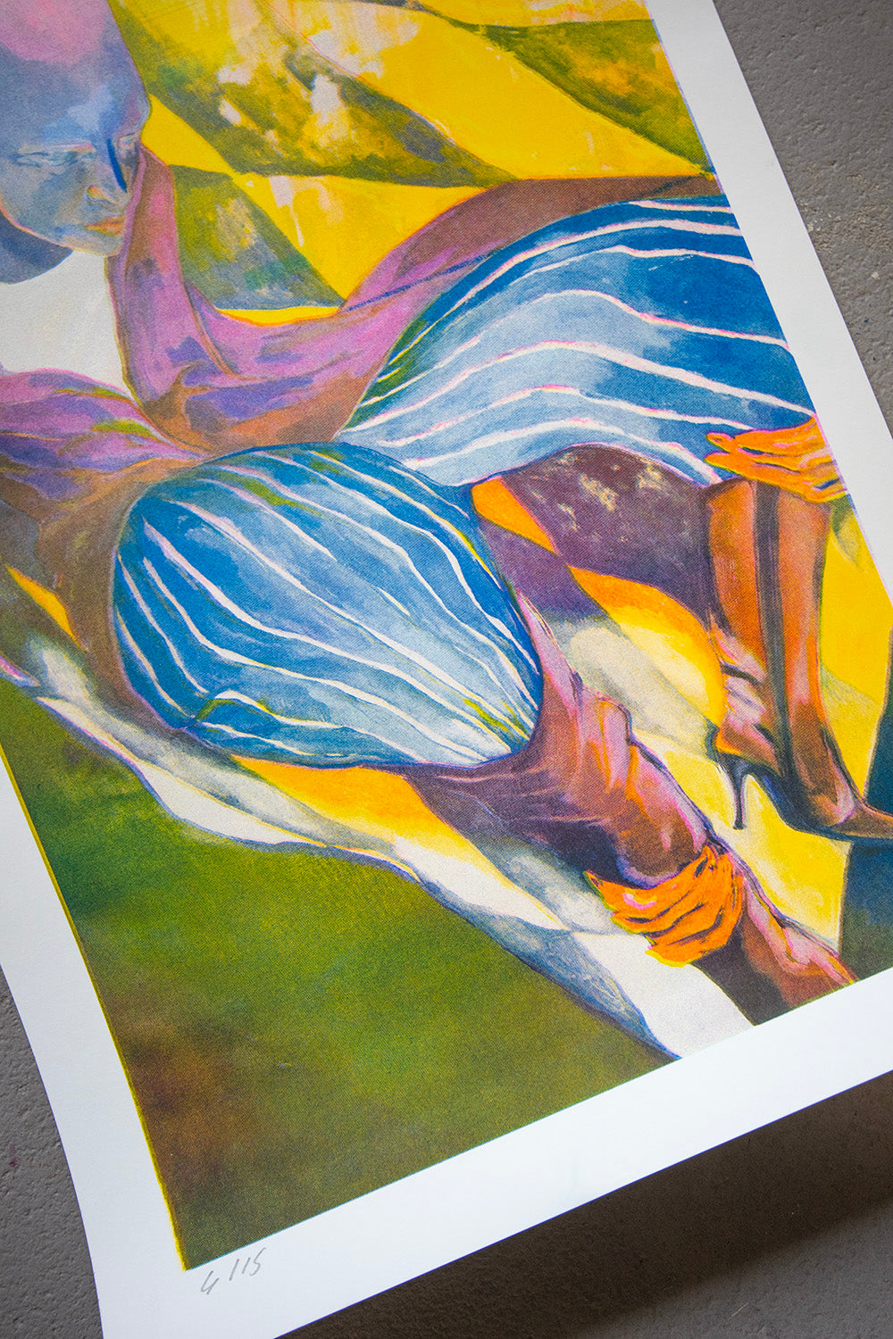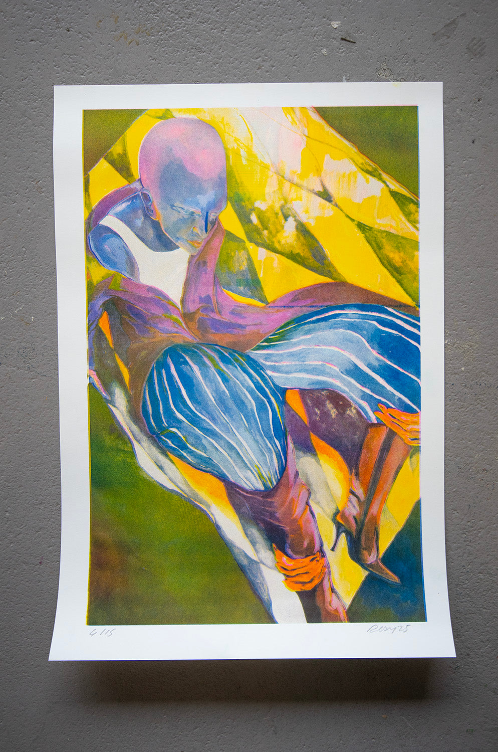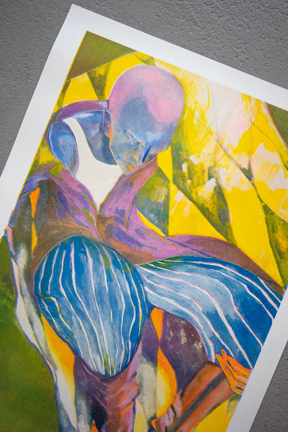 - RISO printed in blue, neon pink, black and yellow. Because of this print technique, all prints can vary a little.