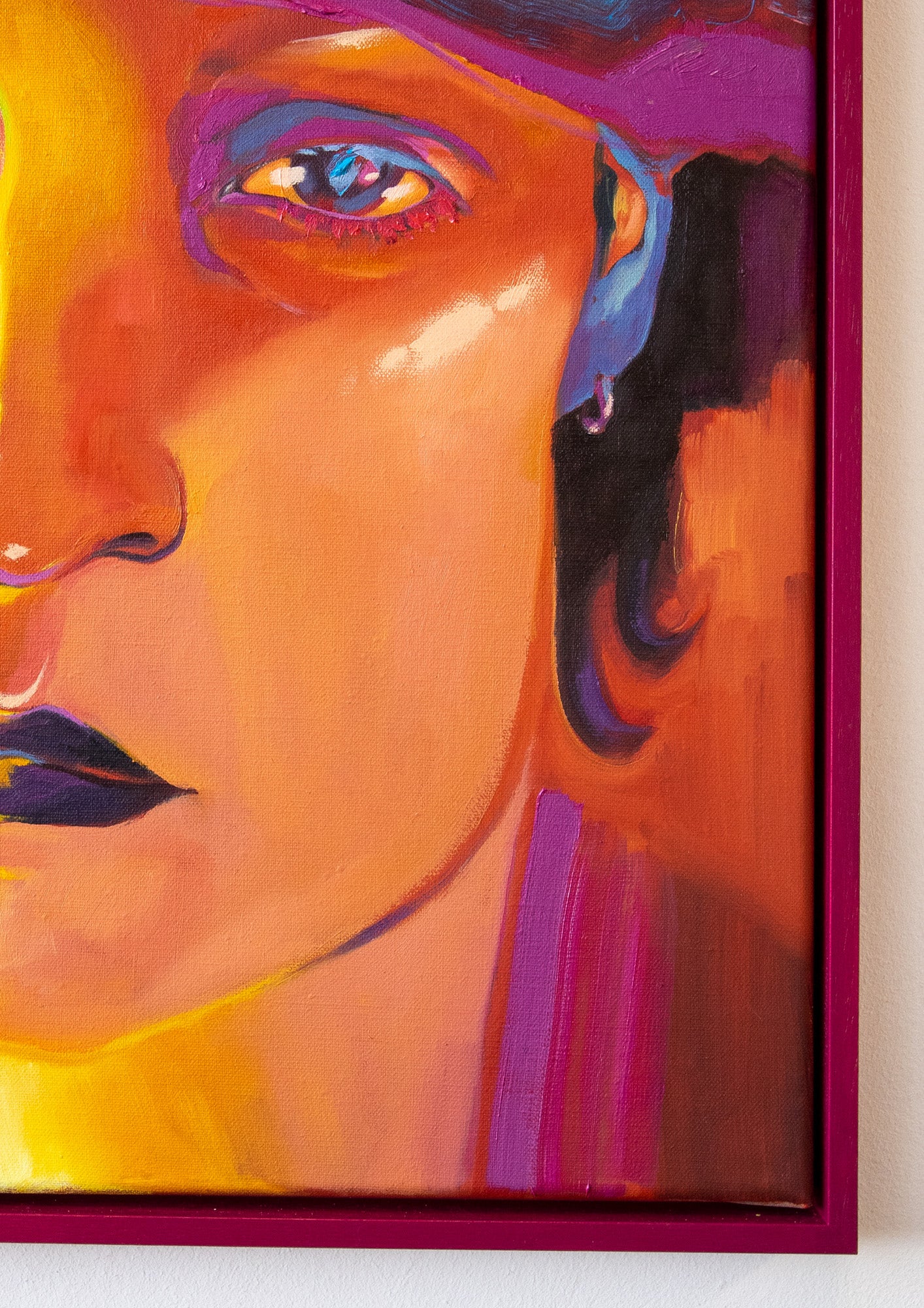 - A black frame always works, but are there colours that fit and elevate the painting?