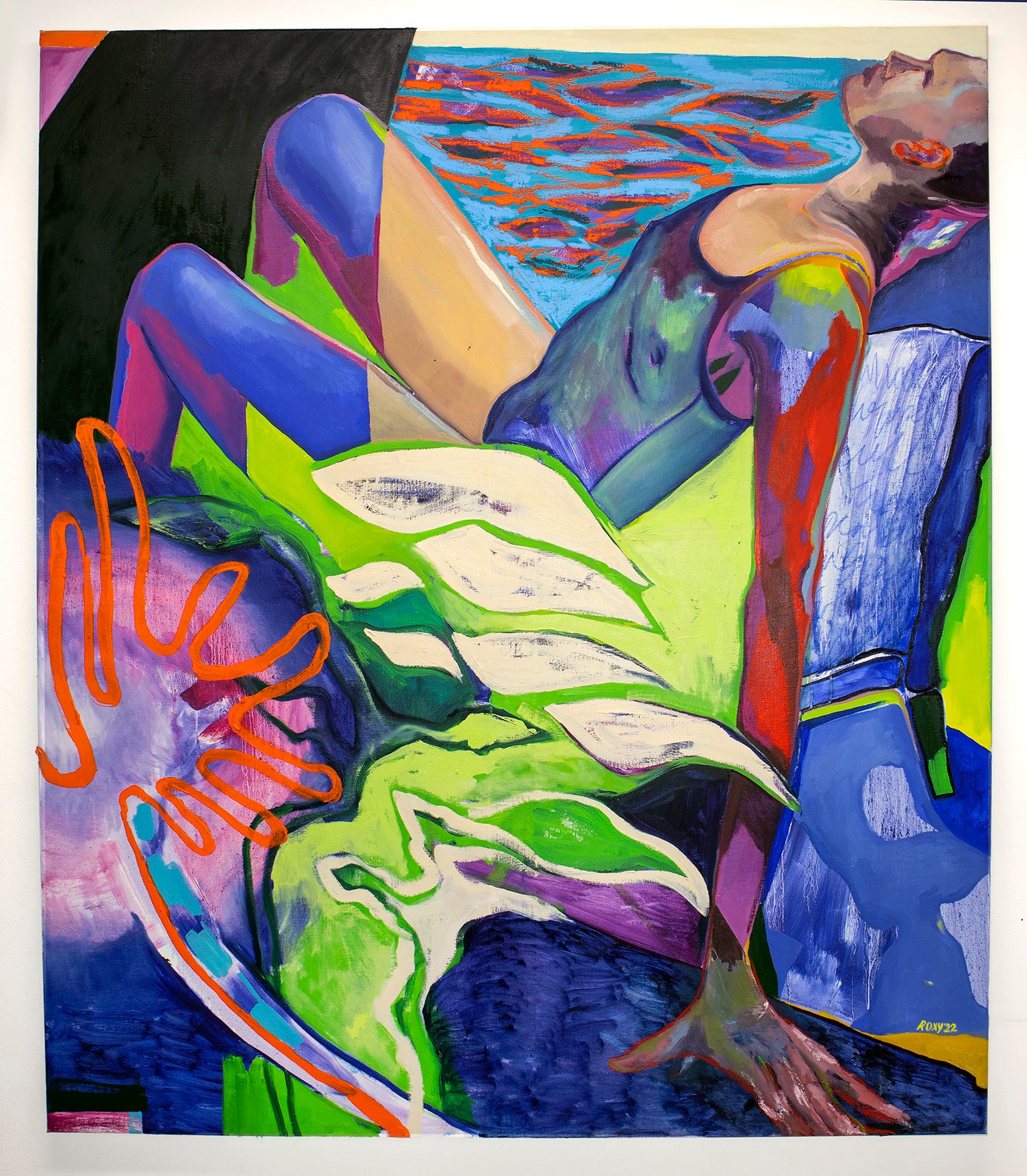 Oil, acrylic and oil pastel on linen, signed. 2022-2023.