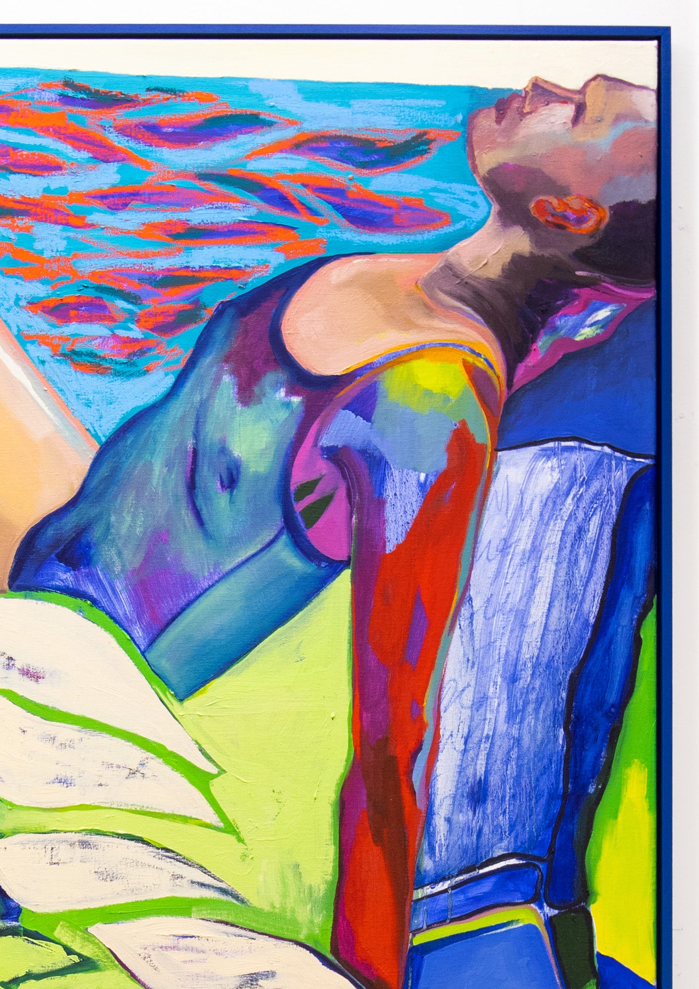 Framed in a custom painted blue wooden frame. Size unframed 125 x 145 cm.